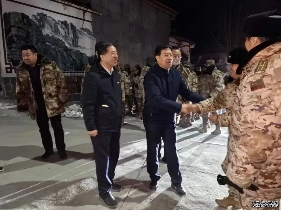 甘肃省退役军人事务厅党组书记、厅长崔进泰在灾区慰问一线救灾的军人