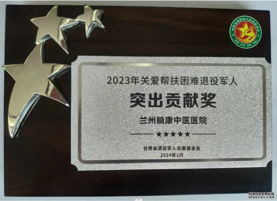 热烈祝贺兰州脑康中医院荣获 ——2023年度甘肃省退役军人关爱帮扶“突出贡献奖”!