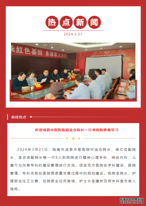 【脑康新闻】成县中医医院祁宝仓院长一行莅临我院进行学科建设学习、发展交流