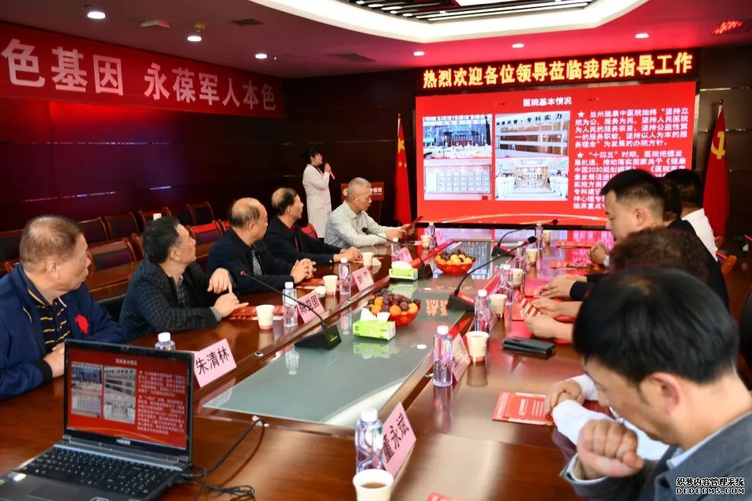 参观结束后,一场旨在深化合作、进步发展的座谈会隆重举行。双方进行交流座谈,兰州脑康中医院王娟院长以满腔的热情和严谨的态度,向调研组详细汇报了医院近几年在脑病专科发展、拥军惠民、社会公益事业、医疗帮扶金捐赠情况、党建领引医院高质量发展等工作情况。